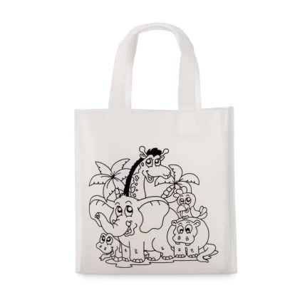 Mini torba na zakupy do kolorowania, w zestawie z 5 mazakami.